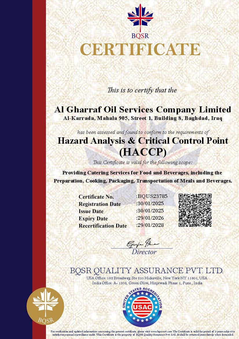 New HACCP certificate issued to Al-Gharraf Oil Services Company Limited
